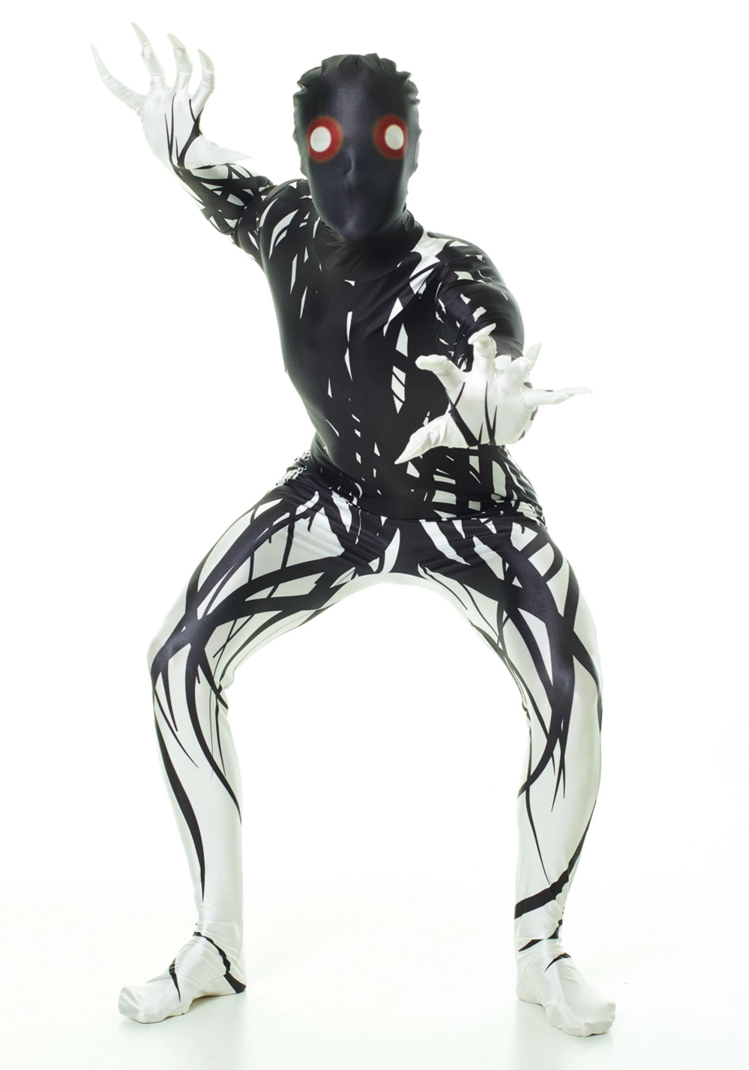 Want to be a dark and horrific creature of the night this coming Halloween? Let the other people dress up as common zombies, boring vampires, and tiresome werewolves because we’ve saved the best costume for you. Check out this crazy Adult Zalgo Morphsuit! Once you slip into this scary skintight outfit you’ll be transformed into this mysterious creature that has only been described as a horror of utmost terror. The lore behind this demonic beast says it has seven mouths and six of them all speak different languages. It also states that once it’s seventh mouth opens, not to speak, but to sing the world will end!