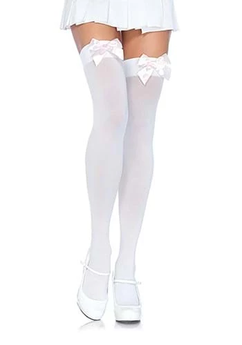 LEG AVENUE White Thigh Highs With White Bow For Women