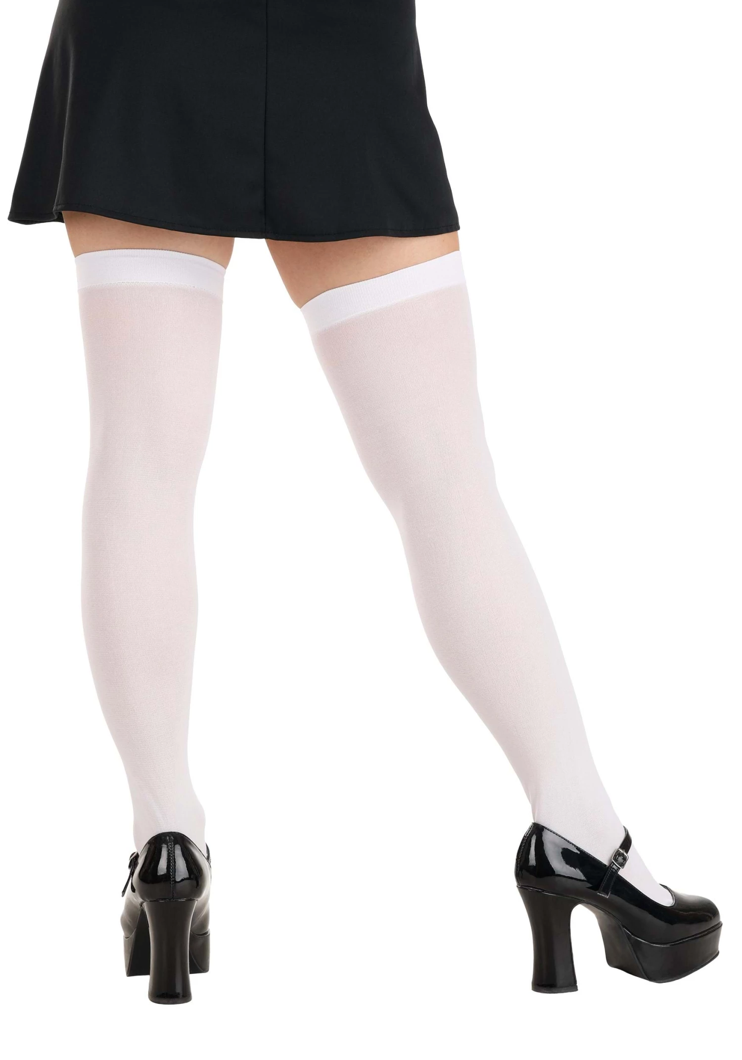 This is an exclusive pair of Women’s Opaque White Thigh High Stockings.
