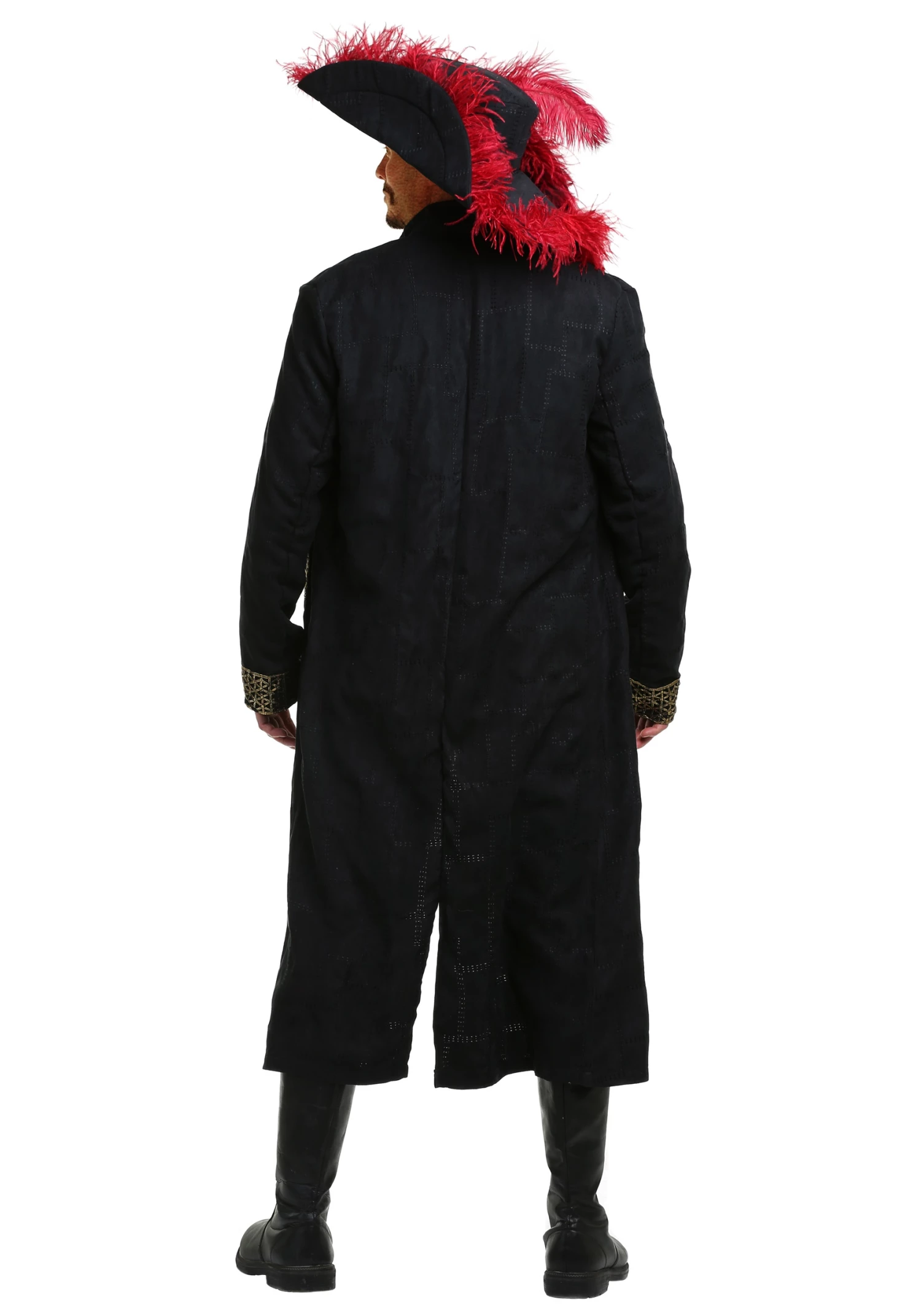 Styled as a shirt, jacket, and pants combination, this ensemble also includes a belt, hat, and sash. All the gear you’ll need to complete your pirate transformation! Attention to detail and high-quality materials are what makes this style stand out above similar costumes. The faux suede jacket has patchwork style detailing, and elegant gold brocade trim. Red feather plumage adorns the hat, and altogether the costume effect paints your picture as a pirate captain who isn’t really going to be shipless for all that long.