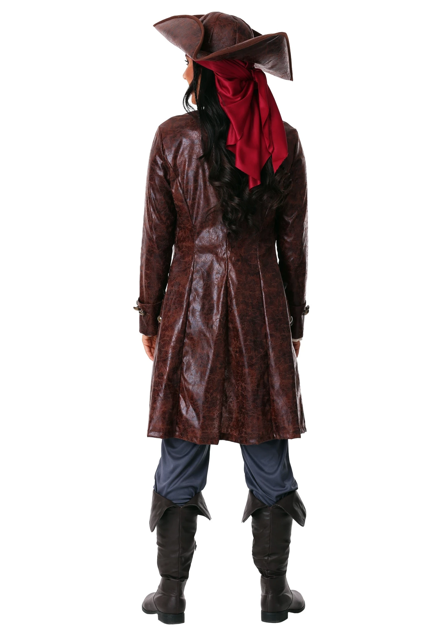 Our in-house designers have been putting their heads together to create pirate costumes that will break the mold! You’ll feel both timelessly nautical and unique in this captain costume. A gorgeous uncommon look is what you can expect when it comes to our Made-By-Us costumes. This look is layered with a lightweight long-sleeved shirt under the vinyl jacket. A scarf and belt are layered over the blouse and the loose-fitting blue pants. The whole look is topped off with a classic tri-corn hat so you’ll look right at home when you take the helm.